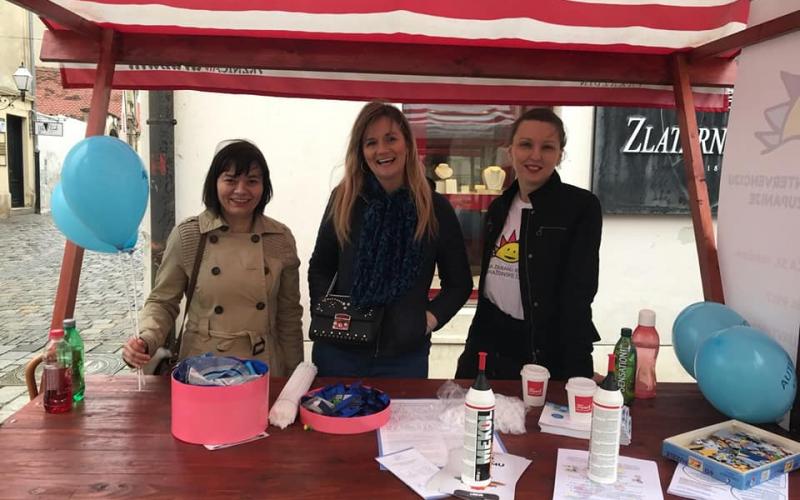 Na kraju smo uz drage suradnike iz Udruge Pogled pustili balončiće. Naše vrijedne Mateja Svetec i Ivana Sopek opet su se potrudile te naš štand ukrasile plavim vrpcama, letcima o ranim znakovima koji upućuju na poremećaj iz spektra autizma i porukicama. Hrabro koračamo u nove pobjede!