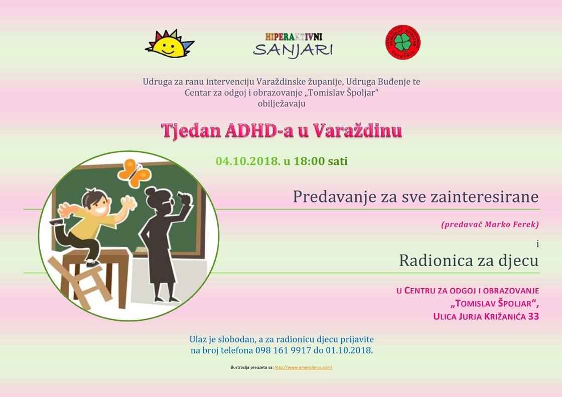 Krenuli smo radno, jesen je uvijek za to najbolja 4.10.2018. obilježavamo Tjedan ADHD-a i pozivamo sve odrasle na predavanje i djecu na radionicu (na koju se treba unaprijed prijaviti). Veselimo se druženju!